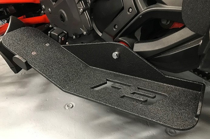 These roomy STV floorboards come in at a length of 18 inches. Made of 1/4" thick aluminium, Laser cut for precision, and they are bolt-on for easy installation. Following the original angle given by the BRP pegs, you get a comfortable forward lean position for an increase in leg room. These floorboards are coated with a tough Line-X bedliner coating. Also available in a cut down version for manual transmissions. $495.00 inc GST